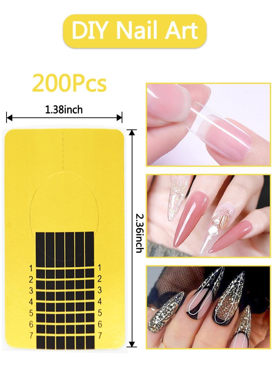 Nail Extension Forms Size: Total 200pcs nail extension stickers, each acrylic nails guide is about 2.36 x 1.38 inch. Adjustable size to fit for all fingers. With length and numbers marked, each nail stickers for acrylic nails can provides an accurate guide for making your pretty nails. Helps to avoid the nail polish to stain your cuticle and fingers.